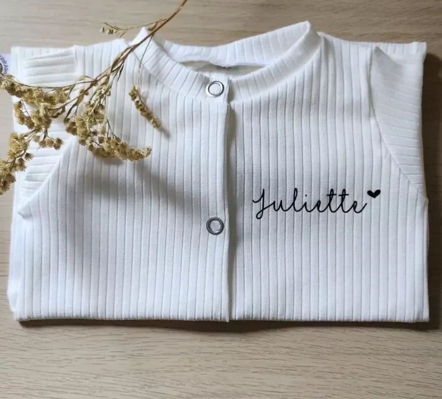 Geef je baby een unieke en liefdevolle uitstraling met ons Boxpakje Rib met Naam | Hartje. Dit schattige boxpakje is vervaardigd uit hoogwaardige ribstof die zacht aanvoelt op de gevoelige babyhuid. De mogelijkheid om de naam van je kindje, vergezeld van een hartje, op het pakje te laten bedrukken, maakt het een persoonlijk en betekenisvol kledingstuk.
