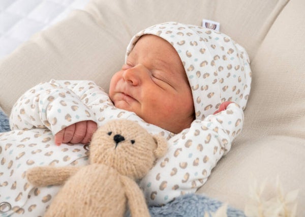 Dit unisex boxpakje in een zachte tricot stof met luipaard vlekjes super fijn voor jouw newborn.