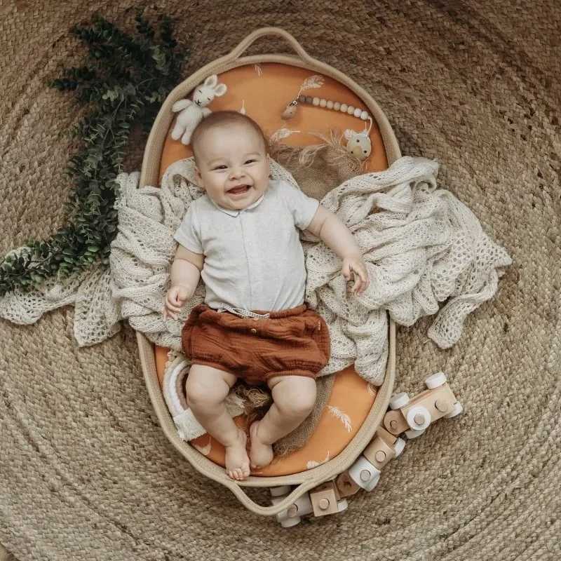 In vergelijking met zeegras, bamboe of rotan is gevlochten katoen extra zacht en beschermend voor de gevoelige huid van jouw kleine wondertje.