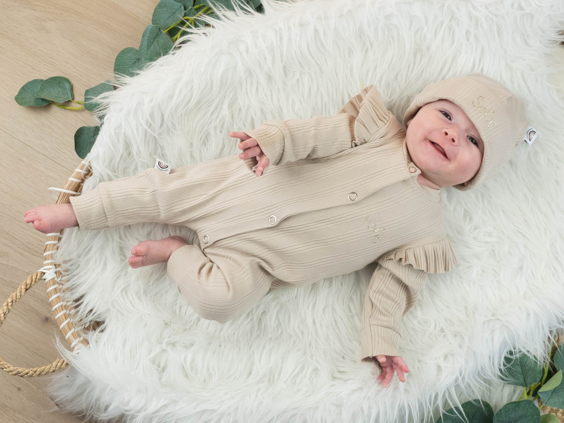 Ons boxpakje van ribstof met gepersonaliseerde naam is de perfecte aanvulling op de garderobe van je kleintje. Dit schattige en stijlvolle boxpakje is niet alleen comfortabel, maar ook uniek dankzij de mogelijkheid om de naam van je baby erop te laten bedrukken. Het is een prachtig en persoonlijk kledingstuk dat speciaal is ontworpen om je kleintje warm en knus te houden.