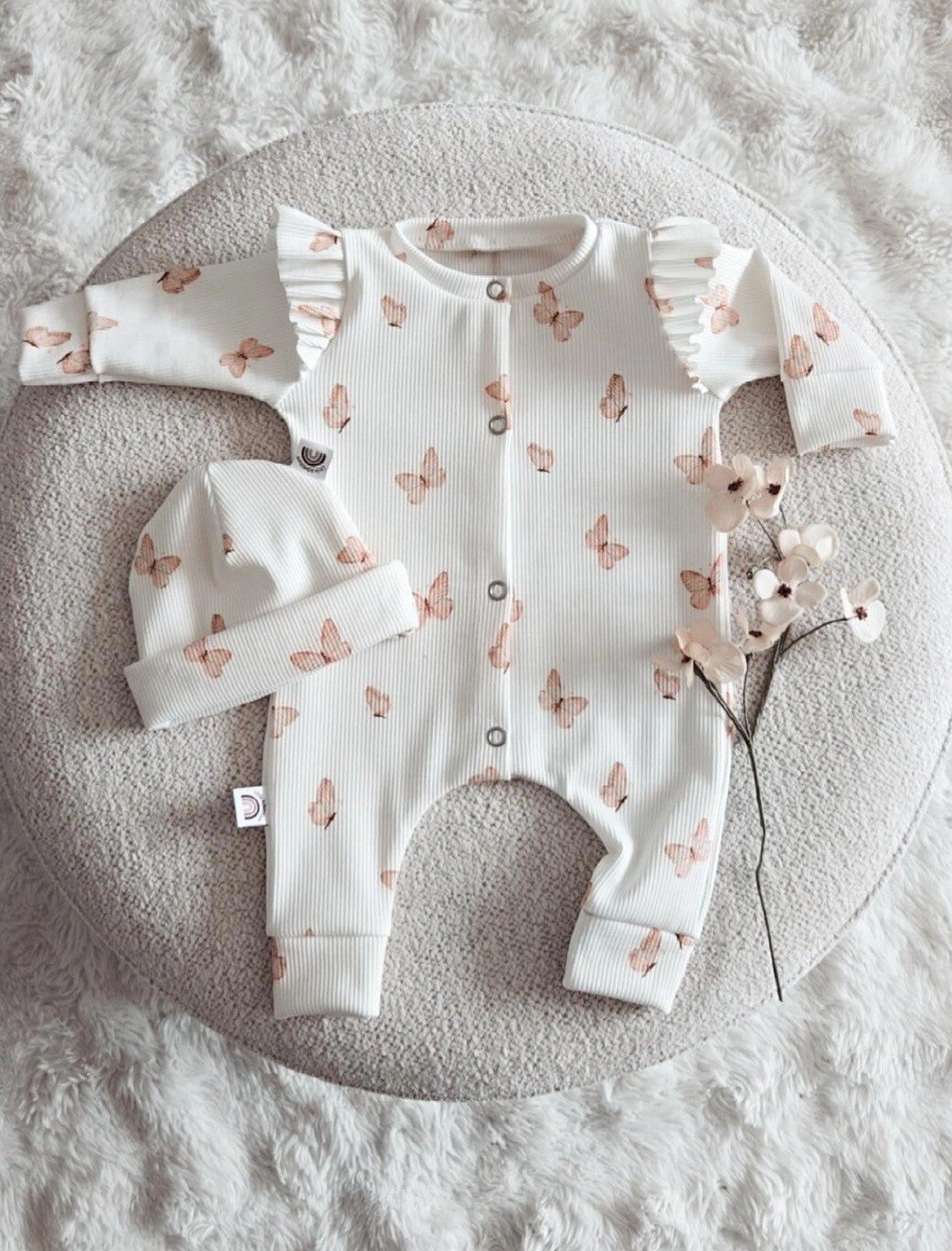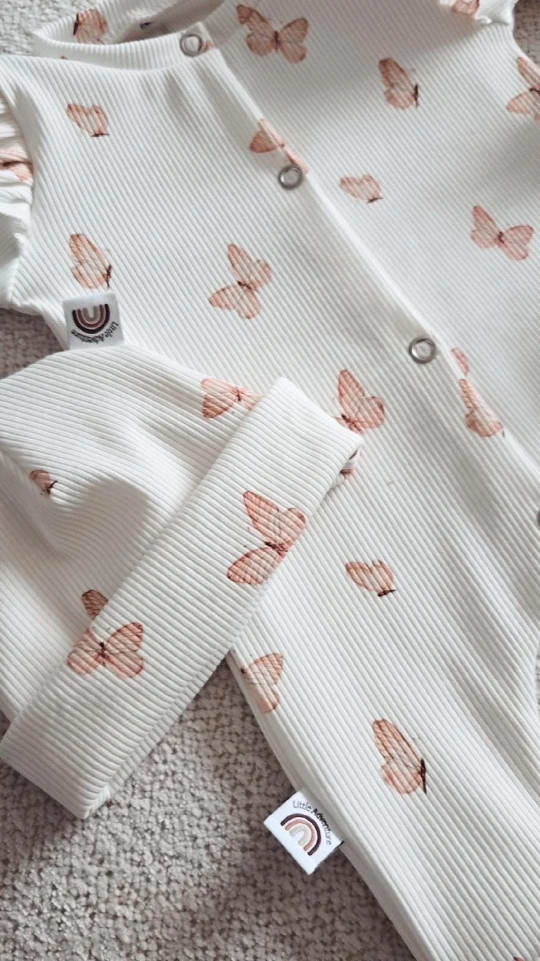 Het boxpakje Rib met vlinder print is een charmant en stijlvol kledingstuk voor baby's, ontworpen met oog voor comfort en mode. Gemaakt van een hoogwaardige ribstof, biedt dit boxpakje zowel zachtheid als duurzaamheid, perfect voor de gevoelige huid van je kleintje. De stof is ademend en flexibel, waardoor je baby zich vrij kan bewegen en spelen zonder enige belemmering.